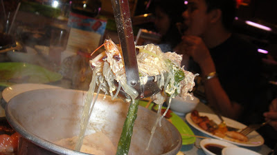 Back to HIV. This was the time the winner of the IM Biggest Loser was not revealed yet and he didn’t know he was Villar, but he treated us to Tong Yang for something, I can’t quite remember what, HIV would treat us with the slightest provocation, for which I am very, genuinely thankful being poor and all. Untrained and totally moronic my hot plate group placed all sorts of stuff in the soup bowl, I threw in some pechay, BL threw in some fish, Pyro threw in some onions, garlic, leaks, squid, prawn, miswa, and more fish, and we all went back to frying things, faster the other group is already eating while we our meat is still bright red after hours of cooking, faster Pyro can I have that prawn, can I have that prawn please, it looks edible, I want it, I want that piece of prawn damn it!