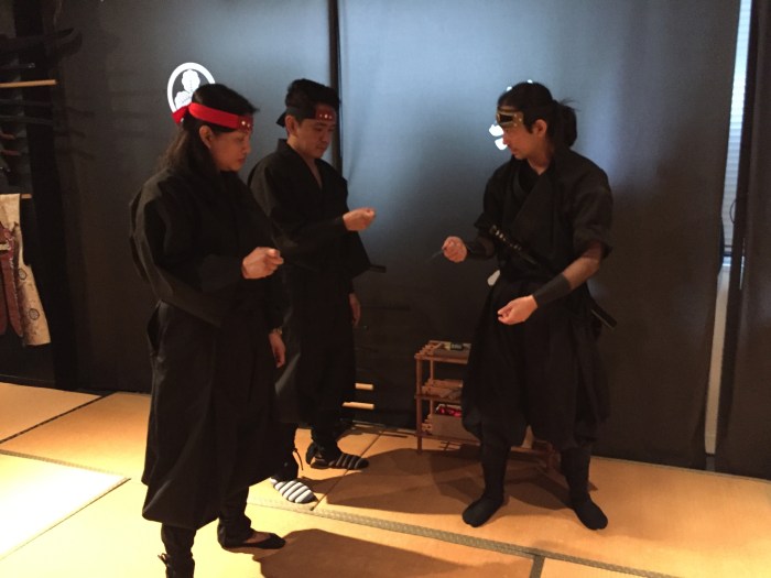 Three years ago I got to wear a martial arts-related uniform again, albeit in a tourist attraction. After escaping a boring conference lecture in Tokyo I went to a Ninja Samurai Dojo studio, along with my friends Alanis Cornucopia, Mrs. G, and Turbidity. We had been thinking of an activity to do in the middle of the afternoon, other than walk and eat Japanese food. We had already eaten batsa-fuls of ramen by that time, and we needed to do something that would justify being hungry again. Apparently Alanis had already planned on becoming a ninja long before the actual trip.