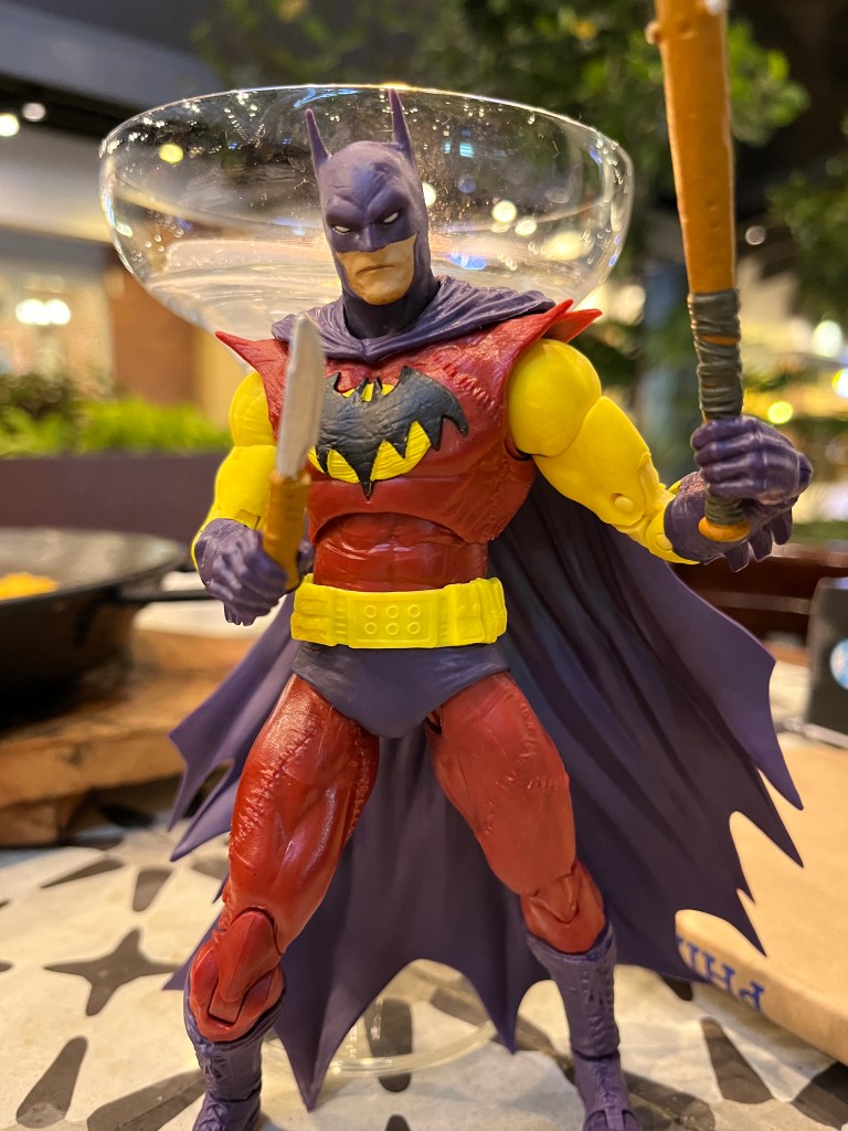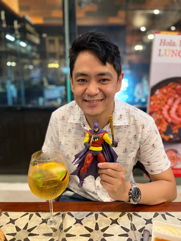 Was able to buy an action figure after almost a year with no new purchase. It seems like I’ve just lost any interest in action figures, and seeing them all knocked down in my eskaparate makes me want to give up the hobby all together. I tried buying The Batman of Zur-En-Arrh multiple times, but just as I was about to pay for it I would change my mind and place it back in the shelf. This time someone was around to enable materialism, so I was able to buy it without remorse. Of course I had to open it even as we were having paella and sangria. We had croquetas, calamares rebozados, paella with tiny pieces of chorizo, and sangria, but of course I only took photo of… the toy.