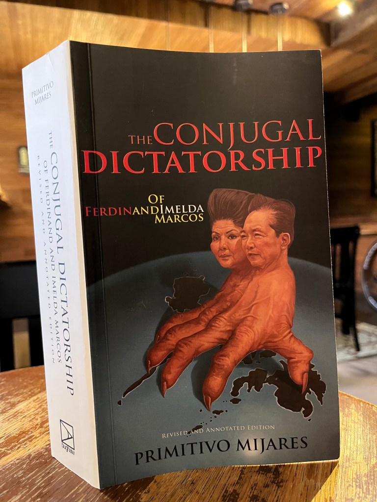 Had a bit of down time this afternoon, and was able to read in the Starbucks branch in front of Makati Shangri-La. Today’s read is Primitivo Mijares’ The Conjugal Dictatorship of Ferdinand and Imelda Marcos (Fully Booked, P650). This is a gripping, heartbreaking read, written by Ferdinand Marcos’ ex-media czar, who defected in 1975, wrote the book, and was eventually killed the year after it was published. His youngest son was also killed and dropped from a helicopter into the mountains. This should have been required reading in elementary and high school. It is a page turner, but I had to stop reading after a while, terrified at the very real prospect of the late dictator’s son rising back to power.