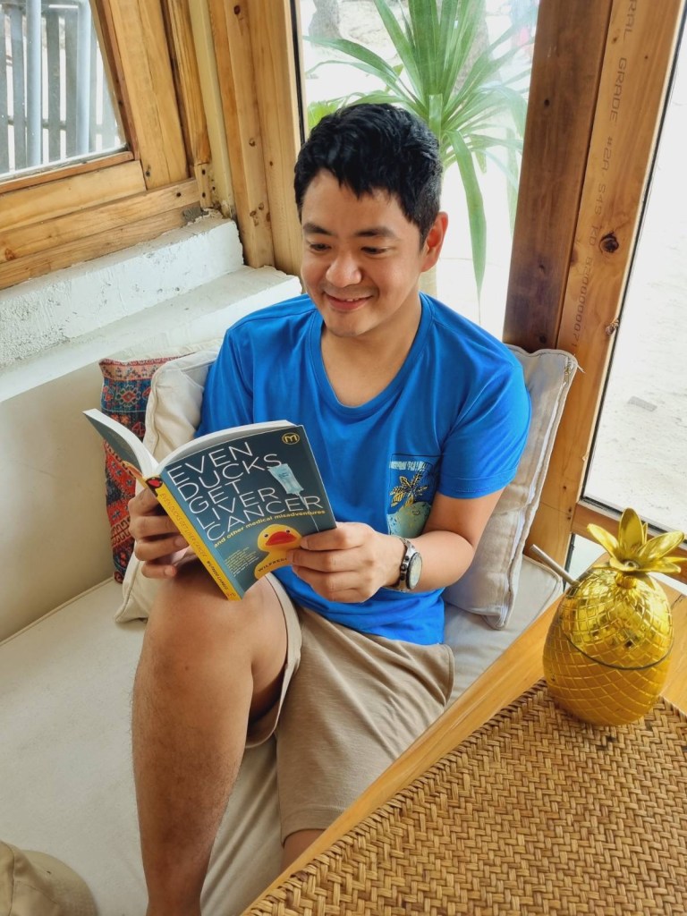 For some reason I wasn’t too excited with the Boracay trip this year, maybe because I was swamped with so many real-life worries this 2023. Eventually enjoyed the trip quite a bit, although there was the threat of #BettyPH coming in and throwing a tsunami into the entire island that very weekend. Smoketh flew out of the island early, so on the last day only Rose and I were left to struggle with the strong island winds. We decided to have lunch in Aplaya, where I had some sandwich and a pina colada. Of course we couldn’t miss that opportunity for… book promodization!